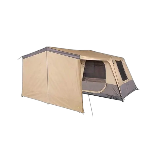 - Velcro tabs on both the tent awning and wall kit for simple attachment