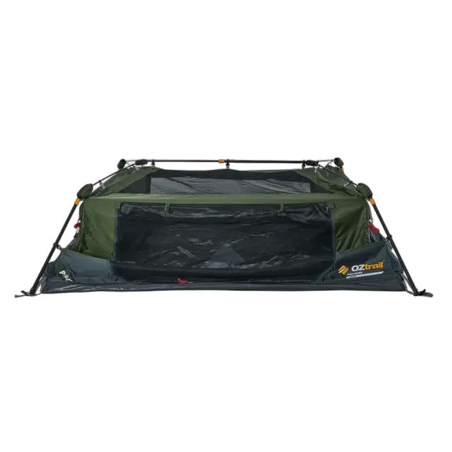 Combines the best of tents and swags in one Fast Frame® system for easy set up in minutes Large gusseted windows provide excellent airflow, reduces condensataion and can be pegged out in bad weather while still providing ventilation Unique twin hub design for quick pitch, extra internal space and strength Dual vestibules provide extra storage areas out of the weather Durable 150D flysheet with 1500mm waterhead rating to keep you dry Heavy duty PE floor No-See-Um Mesh inner tent for excellent airflow and insect protection Fitted guy ropes to inner allows for tent to be pitched without fly to enjoy stargazing Entries on both sides for easy access into and out of the tent Zippered Power Port™ cable access point at the front of the tent Oversized and easy-to-stuff carry bag with compression straps for compact pack size