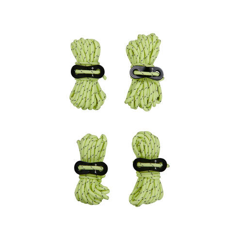 Enhance campsite safety with this 4-pack of glow-in-the-dark guy ropes. Made from durable 4mm polyester, they improve visibility at night, reducing trip hazards. Each rope features an aluminium tensioner for easy adjustment and a generous 3.5m length for versatile use. Stay secure and visible in the dark!