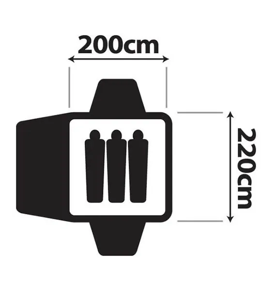 Tent floor area: 205 x 205 cm Tent head height: 125 cm |