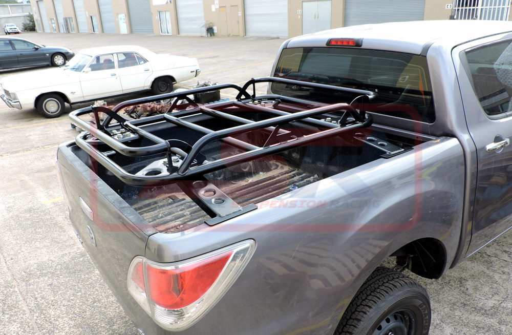 PSR has designed a functional and multi-vehicle Baja rack system for late model dual cab utes. Rack is fabricated from 42NB thinwall tube to keep weight down to a featherweight 36kg unlike others which can weigh over 55kg using standard size tube which puts major stress on tub sides which can ultimately end in cracking around the mounting area.