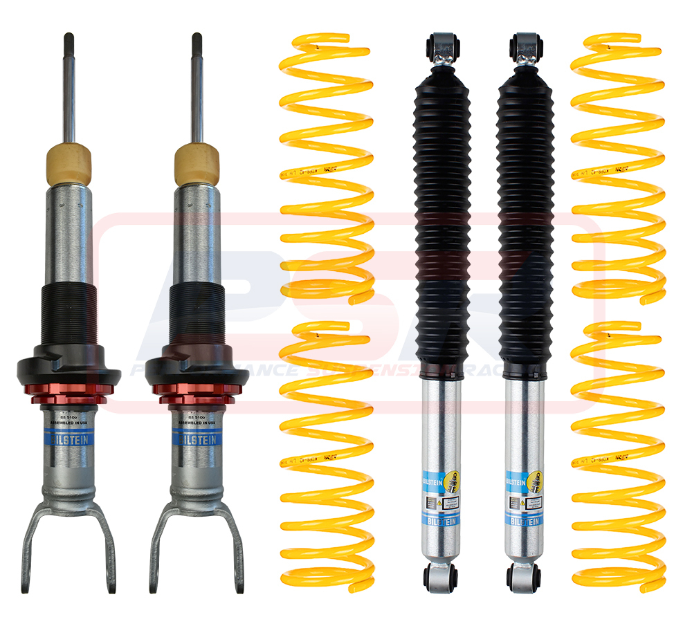 This kit contains Bilstein 3" front struts with King coil springs and Bilstein 2" rear shocks with King Springs rear coils.