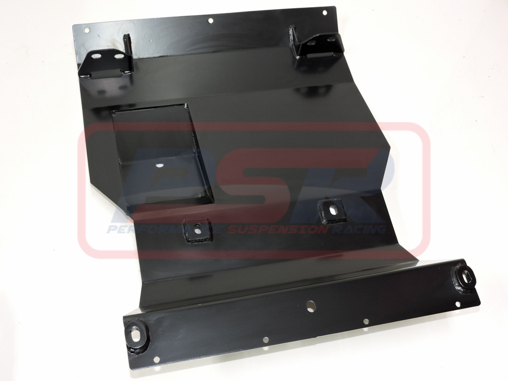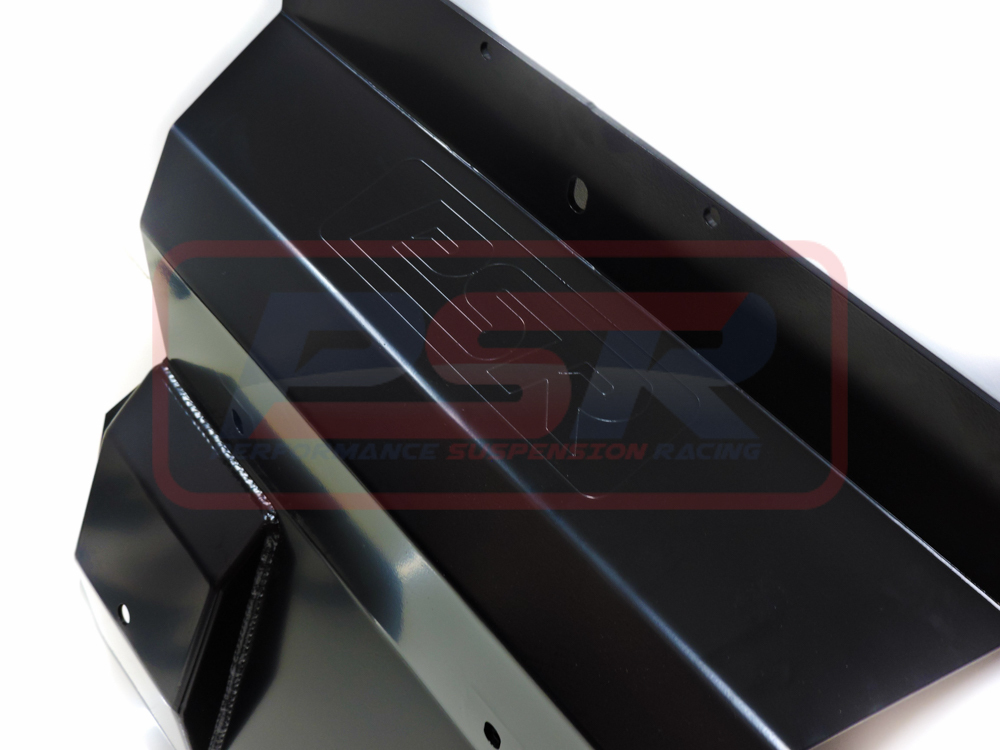 PSR's Mazda BT-50 / PK-PJ Ranger diff drop bash guard is a heavy duty bash guard designed to protect from the front radiator support, the diff and the sump with heavy duty mounting to the rear crossmember points for ultimate strength. Guard features a diff pocket to allow the guard maximum ground clearance while maintaining diff protection. Guard is cut and folded 4mm and powder-coated Black. Guard also features a front edge with pre-cut holes to allow easy fixing of custom made joining guards to suit varying bull bars and also can be coupled up to our rear guard PSRMAZ-011 to continue to protect the gearbox, transfer case and the torsion bar mounts.