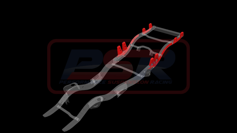 PSR's Nissan Patrol GQ-GU Coil Cab Ute External Heavy Duty Tray Mount System is designed to replace the factory tray mounts to a revised heavier item while bracing the chassis externally for ultimate strength. The factory tray mounts are prone to cracking or failing from fatigue or excessive weight, also the position of the factory mounts make it impossible to brace the chassis. With this system, first the factory mounts are removed, chassis is plated and then heavy duty mounts are welded to the added bracing. This system can be used to replace the factory mounts and brace the chassis or to convert a wagon chassis to a coil cab ute for off road use. For use with PSR long arm control arm position. The kit consists of 12 parts precision cut from 4mm 350MPA plate.