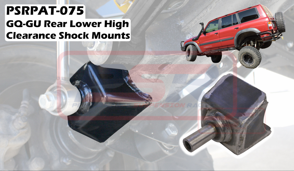 PSR's Nissan Patrol GQ-GU Rear Lower High Clearance Shock Mounts are a weld on mount that replaces the factory location on the diff. This is an area which can greatly improve the rear suspension through modified mounting heights to suit different shock lengths, achieving desired travel of your rear suspension. Depending on requirements both the diff and the chassis mounts can be modified.