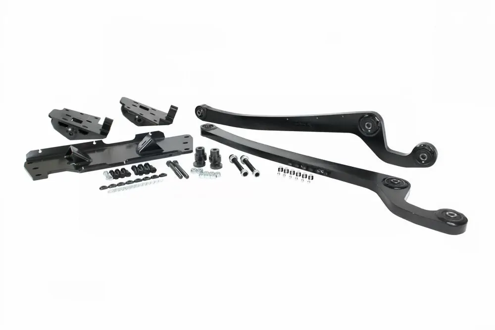 Kit comes with all items for fitment to the vehicle including radius arms, drop boxes, gearbox X-member and all fasteners required. Please specify engine and gearbox combinations below when ordering. SYSTEM COMES WITH A NO BEND GUARANTEE. This means no matter what you have put our control arms or radius arms through we will replace them*!