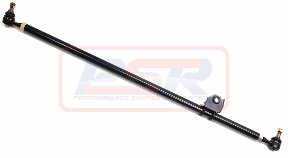 PSR's Nissan Patrol GU heavy duty drag link is made from 30mm 4140 chromoly hollow bar to massively increase strength over a standard unit. Our track rods are rated amongst the strongest in the market using a solid 6mm thick wall tube bar and comes with ultra heavy duty male 20mm replaceable and greaseable tie rod end making this unit fully serviceable when time comes to replace the tie rod ends. A universal steering damper bracket is supplied to accommodate both style of steering dampers depending on the early pin style or late taper style. Bar is CNC machined and undergoes multiple treatments for corrosion treatment to increase longevity. Bar supplied in a coated Black finish to blend into the chassis.