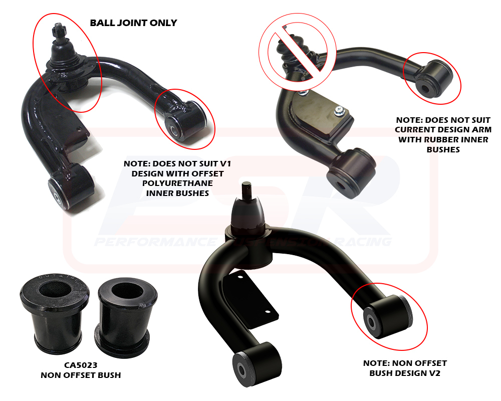 Replacement ball joint for a PSR UCA sold with polyurethane inner bush, will not fit current design rubber inner bush control arm. (see pics in listing)