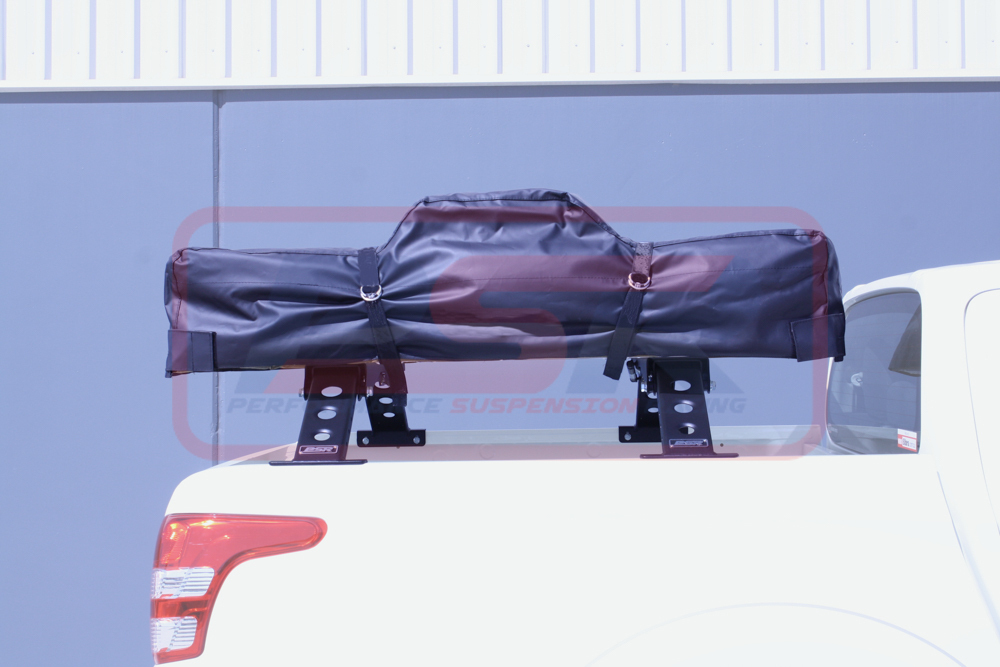 PSR has designed a Baja style Roof Top Tent mount to sit your Roof Top Tent over your tray. Suits ALL ute tubs between 1370mm and 1560mm tub width which is all your common cars, Hilux/Navara/Triton/Colorado/D-Max/Amarok/Ranger/BT-50 etc. Powder-coated Black.