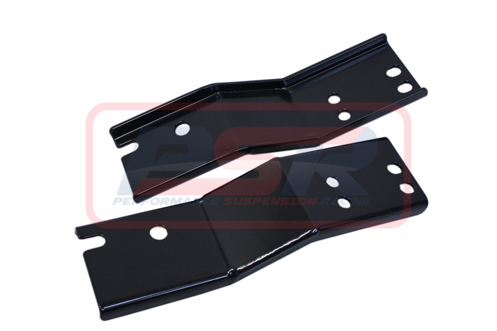 PSR's Toyota Hilux N70 05-15 standard rear bar lift brackets, supplied as a pair to allow lifting of the factory bumper after a body lift realigning the bar to the tub. These suit both 1 and 2" body lifts, powder coated Black.