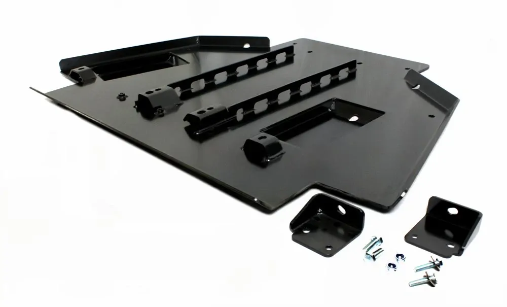 5mm steel, mounted to rear of front guard and runs down side of chassis for support. Pockets for DPF to allow maximum ground clearance. Removal of factory tube DPF protectors required, massively stronger than what is removed!