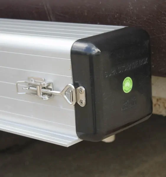 The high quality lightweight aluminium construction has a substantial wall thickness of 3mm to ensure the protection of your tent poles in transit. For further protection, the hi-impact plastic end cap contains a 50mm high-density foam insert to provide cushioning and limit rattling noises. Two lockable latches clamp on to the end cap to securely seal the box and prevent water and dust from entering.