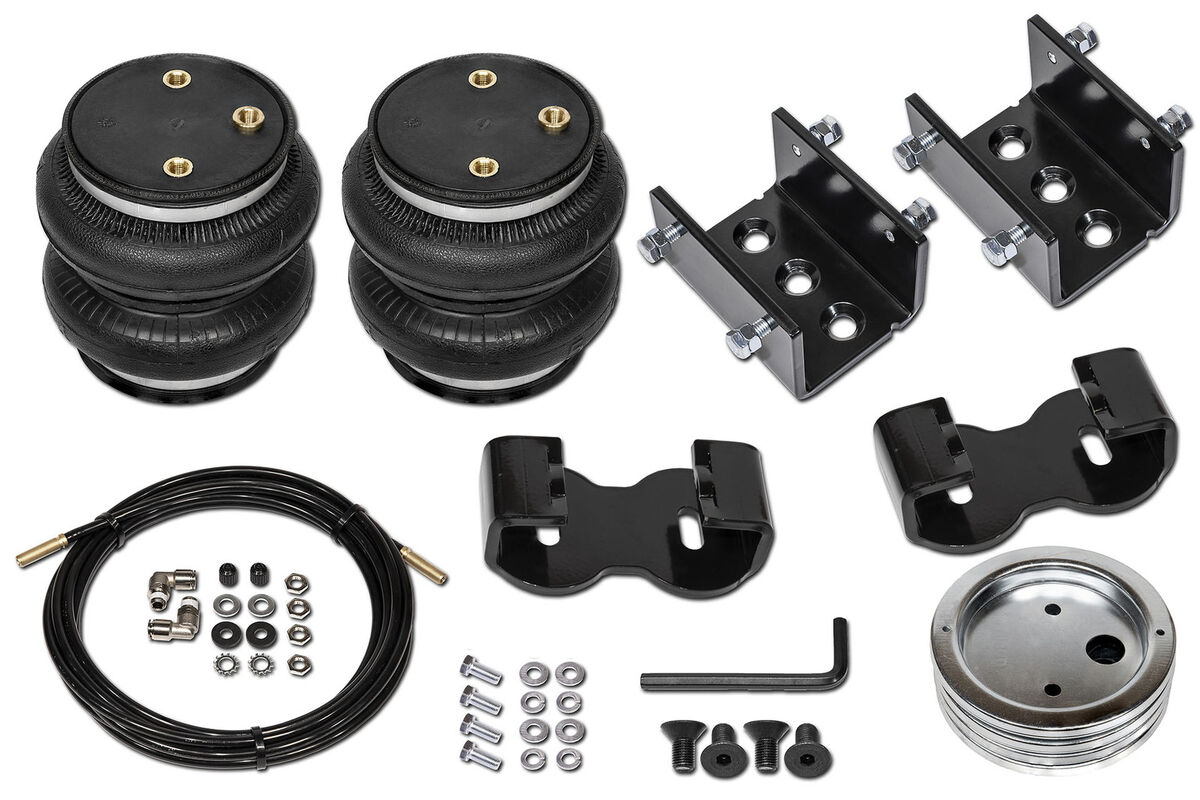 All this can be mitigated by installing a set of Polyair Bellows. The bellows kit is air adjustable, giving you the flexibility to tailor the level of support for your individual load types and weights. Having a correctly sprung vehicle for constant loads is always recommended as the first step, but in most cases the leaf springs are rated well past what you will carry daily, giving you a rough, uncomfortable ride when not loaded up. Having the flexibility of the adjustable Polyair Bellows means you can have a smooth stock ride comfort when unloaded and simply adjust the pressure when towing or hauling. Simple.