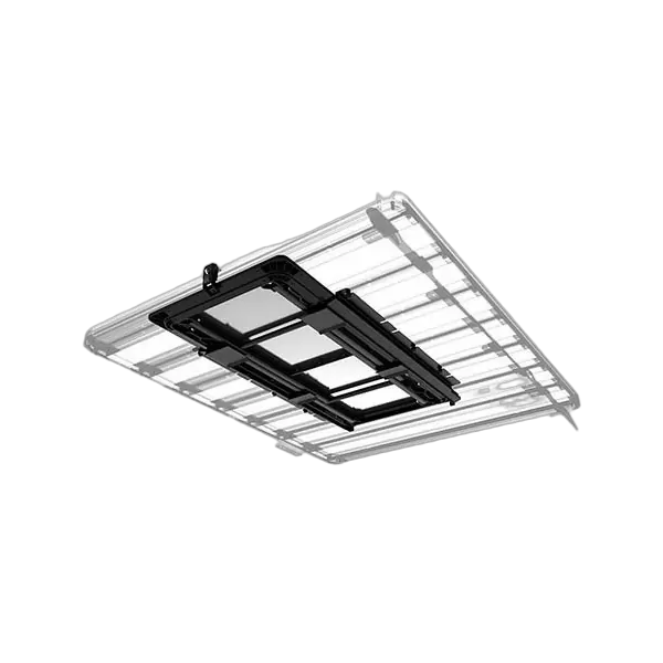The brackets can be mounted both parallel and perpendicular to the roof rack's slats giving the options to access to the table from the side or rear of the vehicle.