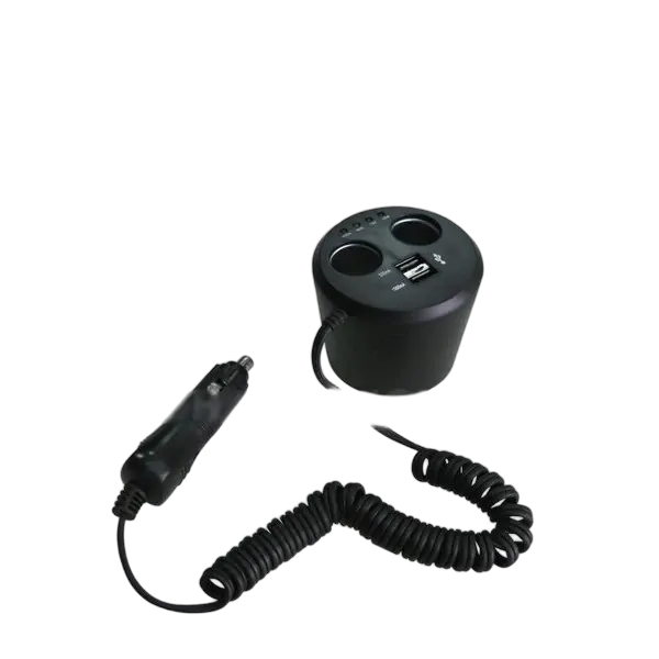The Battery Link Power USB Cup Holder Style Cigarette Lighter Socket plugs into your cigarette socket and sits in your cup holder for a handy power source from either sockets or twin USB power outlets.