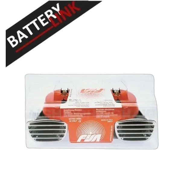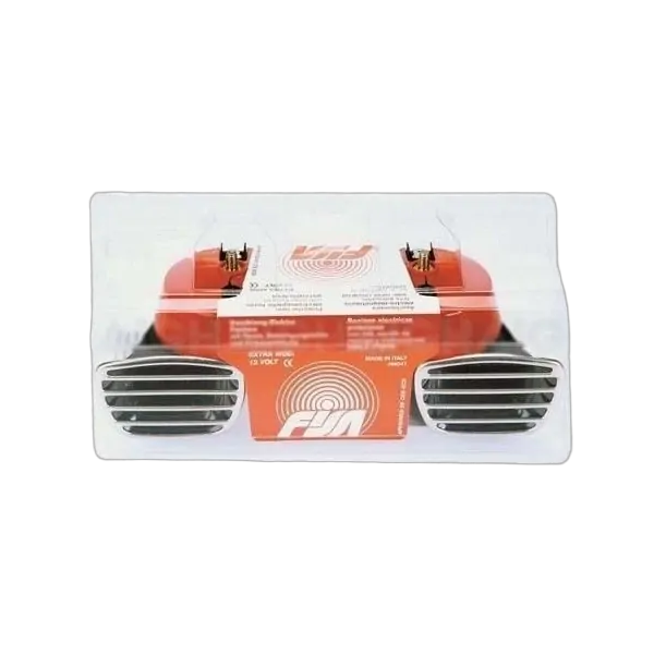 Quality Italian made FISA brand. 12V twin electromagnetic horns with two tones of 405 cps & 495 cps.