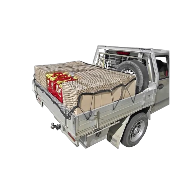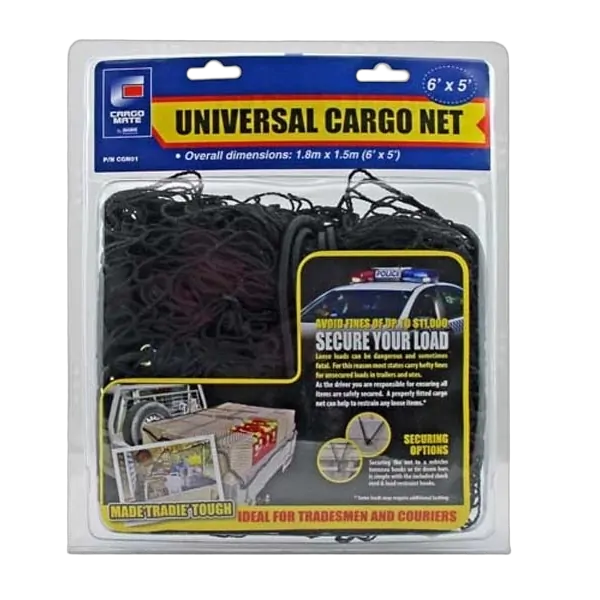 This premium quality jumbo-sized cargo net has been specifically designed to fit single & dual cab utes as well as small trucks with standard or aluminium traybacks. Features special restraint hooks and a quality inbuilt shock cord system. 370cm x 280cm.