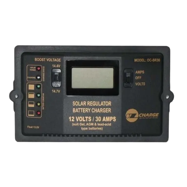 The OzCharge OC-SR30 12 Volt / 30 Amp Solar Controller / Regulator (PWM) is designed for all conventional lead acid type batteries (AGM, GEL, WET).