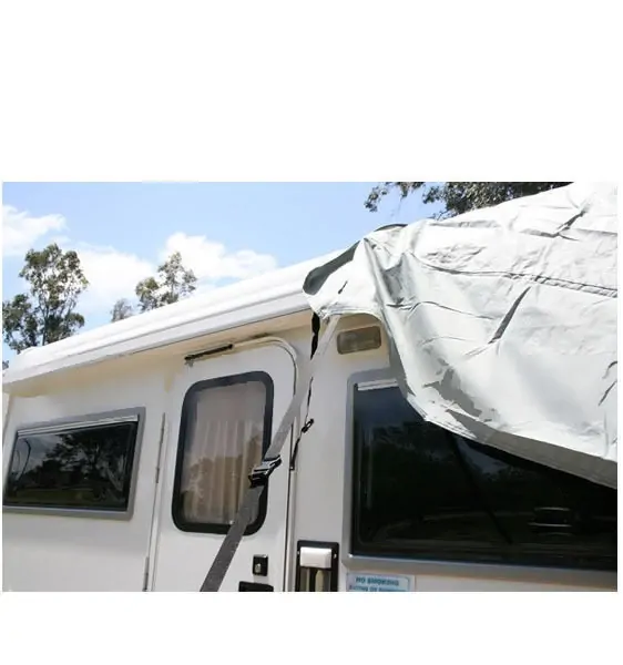 The Prestige RV Cover features a triple layer of breathable UV stabilised, waterproof fabric which covers the entire roof area of the van. The side panels are constructed from a water-resistant polypropylene which is naturally moisture resistant so it won’t shrink or stretch. The material’s breathability allows any wetness and condensation to quickly evaporate and avoids heat build up between the cover and the van. Its lightweight construction makes it easy to fit and it won’t scratch or dull the van’s finish. It includes an elasticised hem with reinforced material around the base which helps avoid damage caused by sharp or protruding edges. Reinforced corners and double stitched seams have also been added to ensure durability. The cover is secured with front & rear dual clip nylon straps.