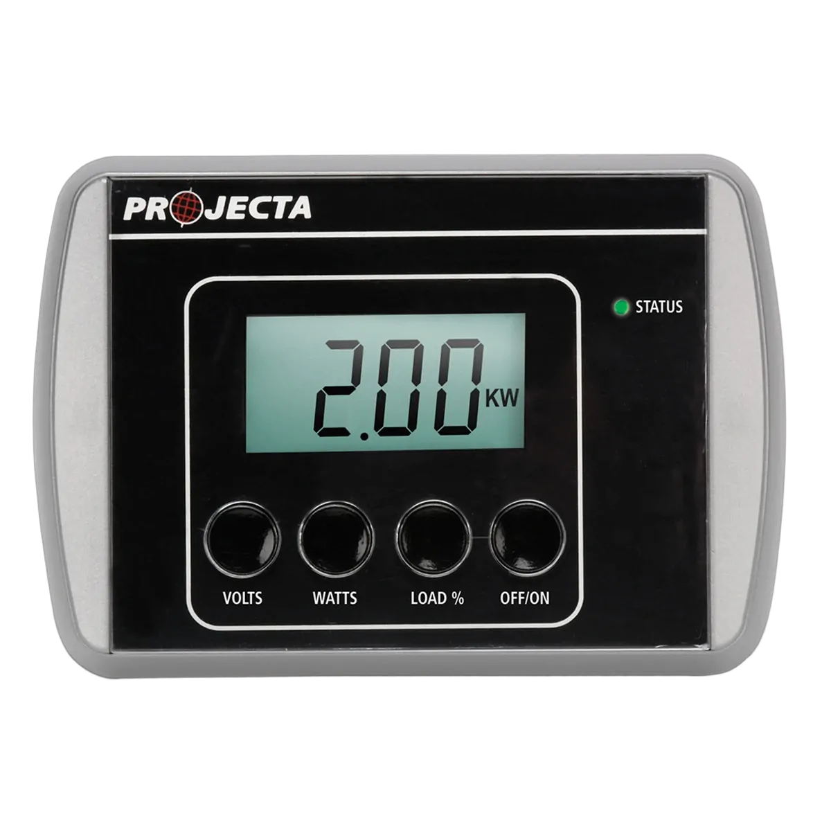 LCD display and remote control unit provide information on battery voltage, power usage and load capacity