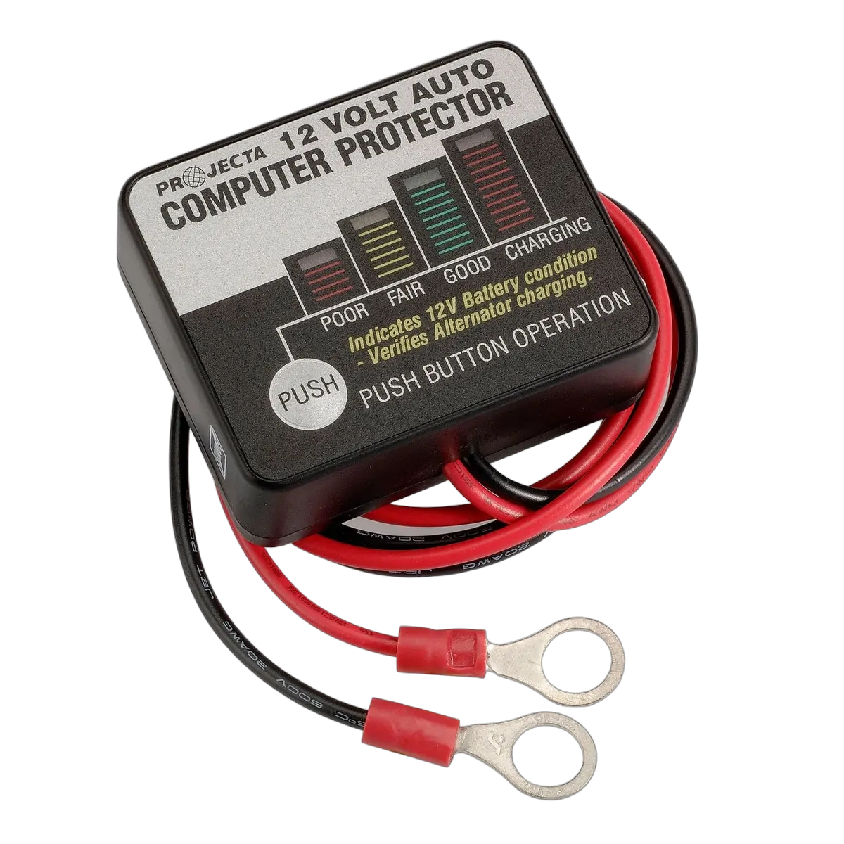 Protects vehicle electronics against a voltage spike when jumpstarting. Indicates battery condition and verifies that the alternator is charging while the motor is running, mounts to battery for permanent surge protection and is quick and easy to fit.