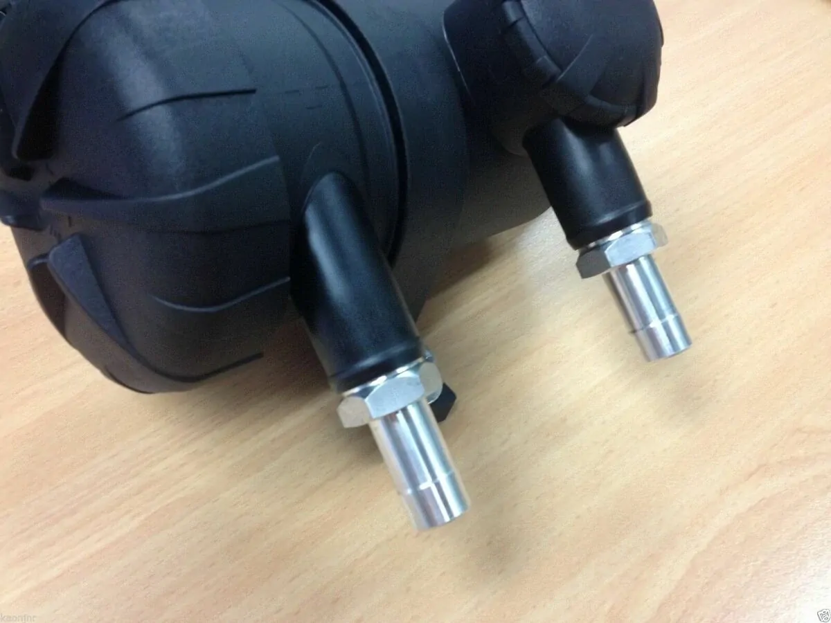 These reducers screw into the outlets of the catch can and has a 16 and 19mm hose tail. An O-ring is used to provide a pressure tight seal.