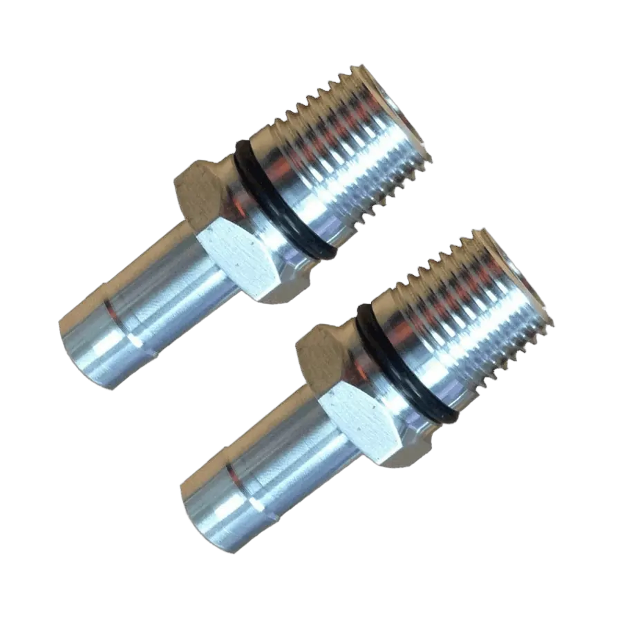 These reducers screw into the outlets of the catch can and has a 16mm hose tail. An O-ring is used to provide a pressure tight seal.