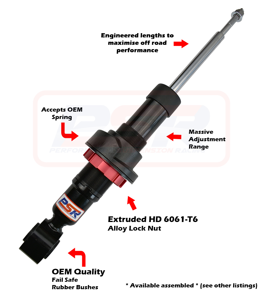 Most companies only evaluate things like shock valving and length BUT only redesign to suit their own construction style. At PSR we evaluate critical elements of the shock that make it worthy of fitment to your vehicle such as length and weaknesses within the suspension.