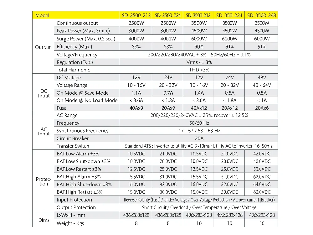 • Output protection: Short Circuit / Overload / Over Temperature / Over Voltage
