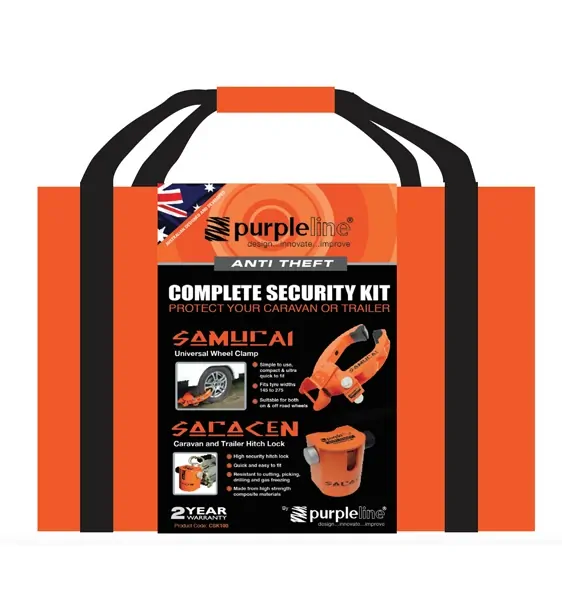 Combining FullStop’s Samurai Wheel Clamp and Saracen Hitch Lock in one compact, easy-to-use kit, the entire system is ‘keyed alike’ for your convenience. Plus, the kit comes in a slim carry bag that’s easy to store when travelling. Both units have FullStop’s tough, 7-pin locking mechanism and rugged steel construction.