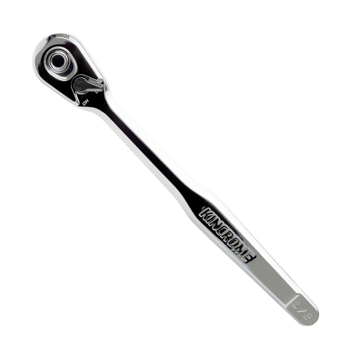 Discover Kincrome’s exclusive, 100% Australian-designed ratchet range—unique to Kincrome and the Australian market—crafted from premium Chrome Vanadium steel with a sleek Chrome Mirror finish and featuring an upgraded 90-tooth ratcheting mechanism for ultra-fine 4° swing adjustments; choose between quick-release button or sealed head designs, benefit from easy end-stop drive-size stamping for instant identification, and find the perfect fit in stubby, standard, long, or extra-long lengths; experience superior ergonomics with the CHOKE GROOVE head for improved grip and a longer swept-handle design for greater leverage, all engineered to meet and exceed DIN standards and proudly designed in Australia for Australian professionals.