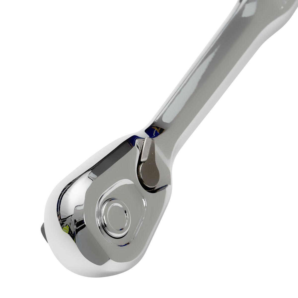 Discover Kincrome’s exclusive, 100% Australian-designed ratchet range—unique to Kincrome and the Australian market—crafted from premium Chrome Vanadium steel with a sleek Chrome Mirror finish and featuring an upgraded 90-tooth ratcheting mechanism for ultra-fine 4° swing adjustments; choose between quick-release button or sealed head designs, benefit from easy end-stop drive-size stamping for instant identification, and find the perfect fit in stubby, standard, long, or extra-long lengths; experience superior ergonomics with the CHOKE GROOVE head for improved grip and a longer swept-handle design for greater leverage, all engineered to meet and exceed DIN standards and proudly designed in Australia for Australian professionals.