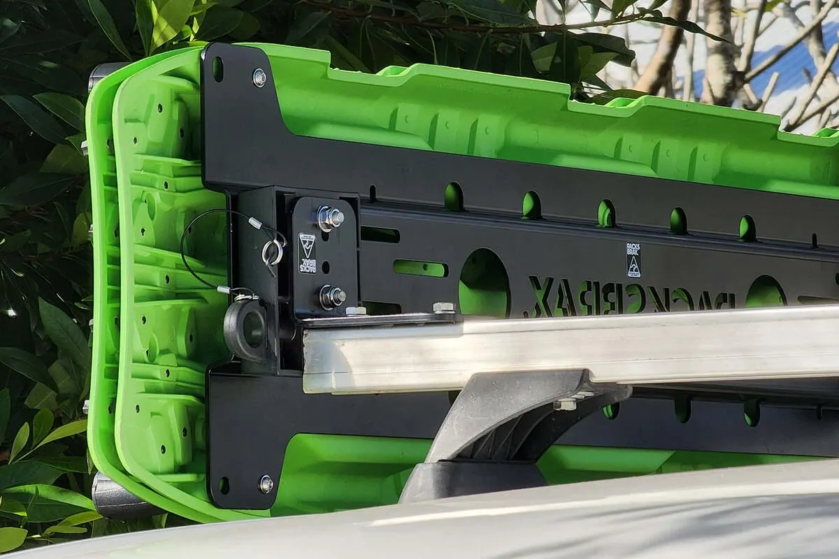 The RacksBrax HD Accessory Plate with a RacksBrax HD Hitch (sold separately) allows you to lock on or take off your full-sized MAXTRAX® and TRED® recovery boards. Take your MAXTRAX® MKII, MAXTRAX® XTREME, TRED® Pro, ARB x TRED® Pro or TRED® 1100 recovery boards off your roof rack in less than 10 seconds. The fully engineered, lightweight powder-coated aluminium RacksBrax Accessory Plate suits most roof rack bars – check our RacksBrax Recovery Board Mounting Reckoner for further information.
