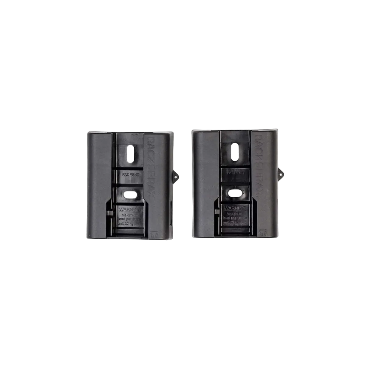 This pack includes one pair of quick release Bodies so that your roof rack accessory can be fixed to a garage wall when not in use. This allows for easy changeover from awning to conduit tube and back to awning … each in less than 10 seconds.