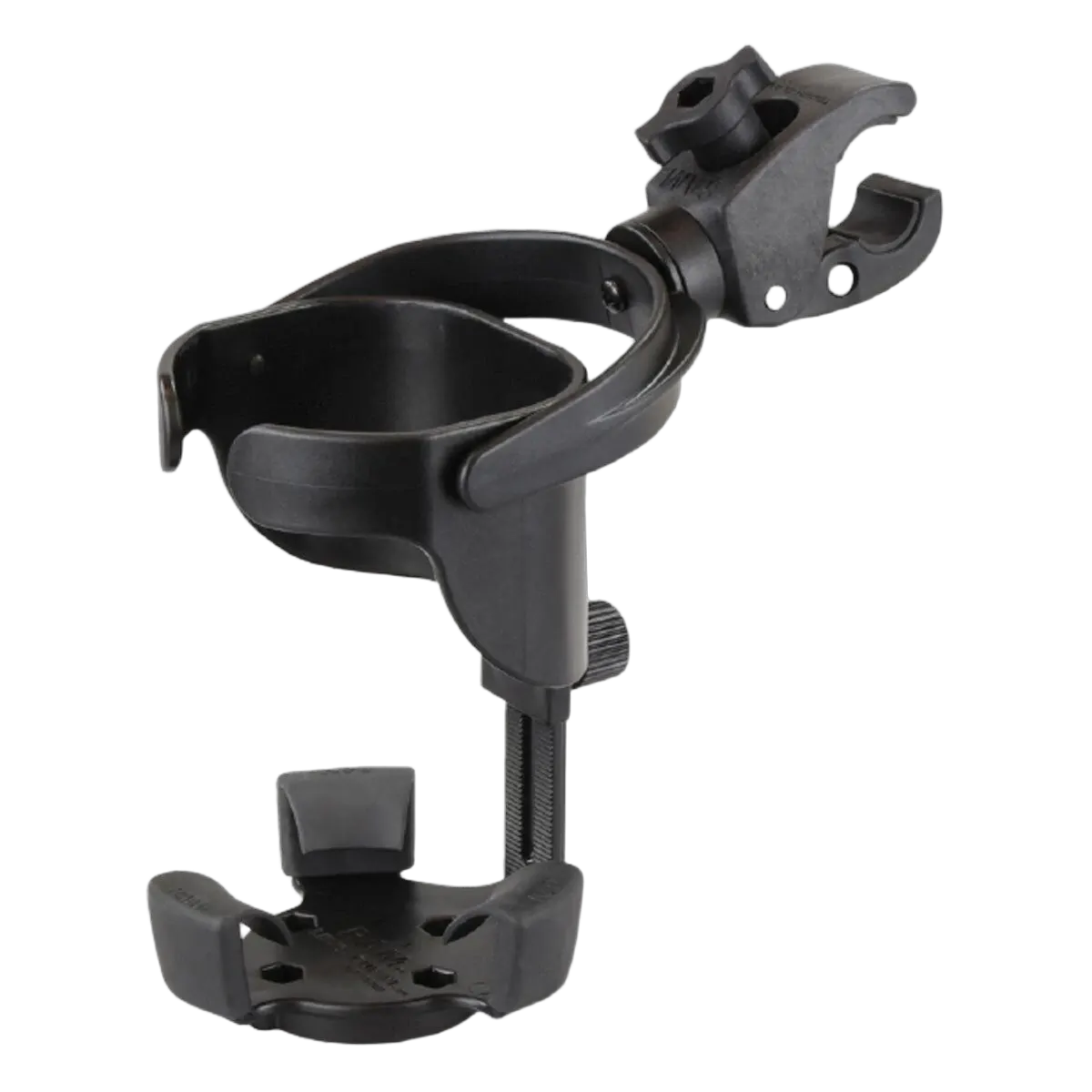 Designed for bigger insulated cups, plastic water bottles or even your reliable steel coffee cup, the Level Cup XL keeps your drink upright, regardless of the conditions. This kit includes a Level Cup XL with an integrated Tough-Claw™. The Tough-Claw allows for toolless removal and adjustments on any rail or flat bar. The Tough-Claw can attach to any surface from flat through a 38mm railing. The overSized opening cradles the biggest of gulps and the adjustable bottom piece moves up and down to accommodate taller cups. The rubber feet flex to fit various Sized cups as well. RAM® Mounts has refined the self-leveling action to keep your cups full.