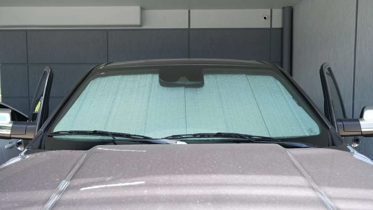Note: Our custom sun shades block out a significant amount of light and UV rays that enter from the front windscreen, however due to the angle of the front windscreen and additional sensors or different mirror shapes/sizes available for different models, there may be slight gaps around your rear-view mirror or sides to allow the sun shade to fit.