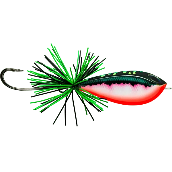 Originating in Southeast Asia for the snakehead market the Jumping Frog style lure is gaining popularity amongst in Australia for or predatory fish. Designed to jump and skitter on the surface on a fast steady retrieve and with the ability to be fished through heavy cover and over surface debris, the Skitter Frog allow anglers to keep the lure in the strike zone longer. Featuring a solid balsa body coated in a strong copolymer shell, wire-through technology and heavy-duty premium VMC double hook. The BX Skitter Frog has been built to withstand the damage caused by larger predators. Finished off in typical Rapala style the BX Skitter Frog comes ni a wide range of fish catching colours and features a thick colour matched rubber skirt to help with action and snag resistance.