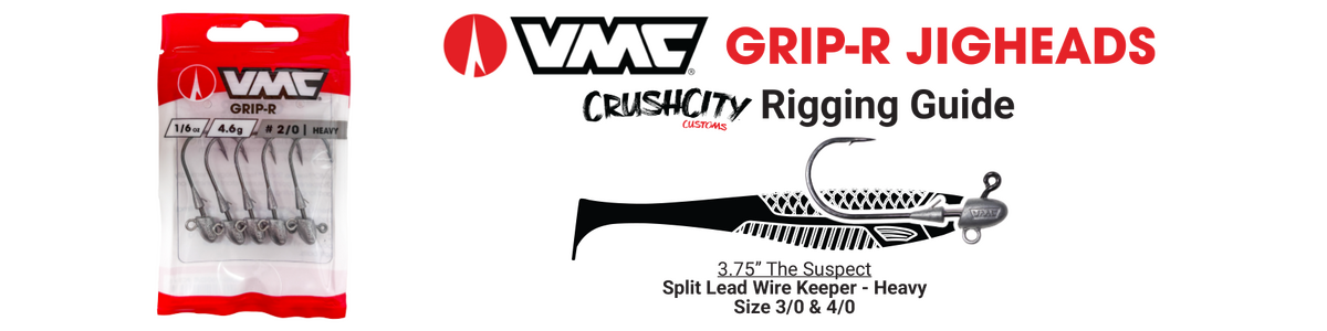 Designed to be run on a standard VMC Grip-R Jighead but can be rigged on a weedless hook or with the addition of a jig-spinner.