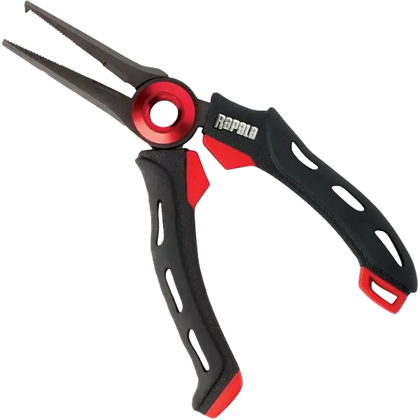 Rapala’s proprietary, patent pending Mag Spring mechanism on the pivot point of the pliers has two opposing magnets that push away from each other and hold the pliers open for easy one hand operation. Unlike springs, the magnets won’t break or lose their power in use. The durable stainless steel jaws with gun metal finish have serrated tips for secure grip. Ergonomic, co-molded Soft Grip handles for comfortable hold.