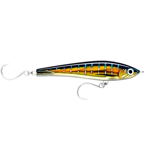 Designed for fast and aggressive retrieves, the X-Rap® Magnum Stick 17 swims in wide S curves on the retrieve. Horizontal line tie allows for a wider swimming action. Once stopped, this lipless stick bait dives head-down with a fish-triggering flutter. Heavy-duty construction withstands savage big blue water predators. Weighted for long-casts, the scalloped internal reflective construction gives life-like flash even with the slightest motion.