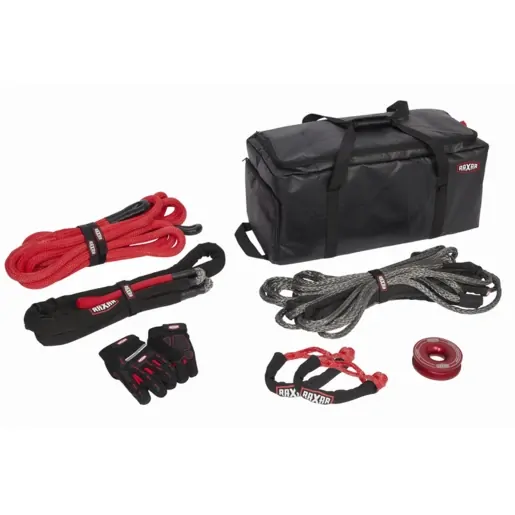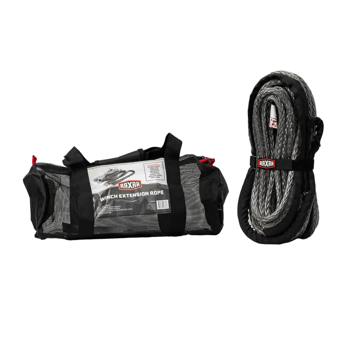 The RAXAR 8K Recovery kit includes all the essentials for your recovery situation. With an 8K Kinetic Rope, Winch Extension Rope, Utility Rope, Soft Shackles, Aluminium Recovery Ring and Recovery Gloves, all housed in a premium multi-use bag, you have all the necessities to approach a recovery with confidence. RAXAR. Play Harder.