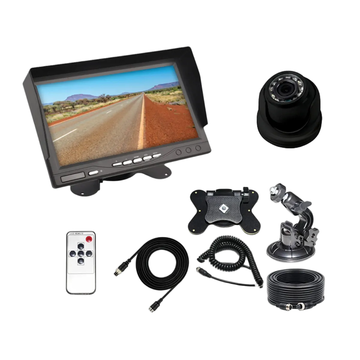 The Aussie Traveller Rear View Camera Kit as a must for your vehicle, so that you can get a clear picture what's behind you. The round eyeball style camera produces wide angle, high quality imagery for you to view on the 7 inch high resolution display monitor. This kit has all that is required for easy installation and mounting. It is exactly what you need for keeping a close eye on your 4x4, Caravan, RV, Camper Trailer or Motorhome.