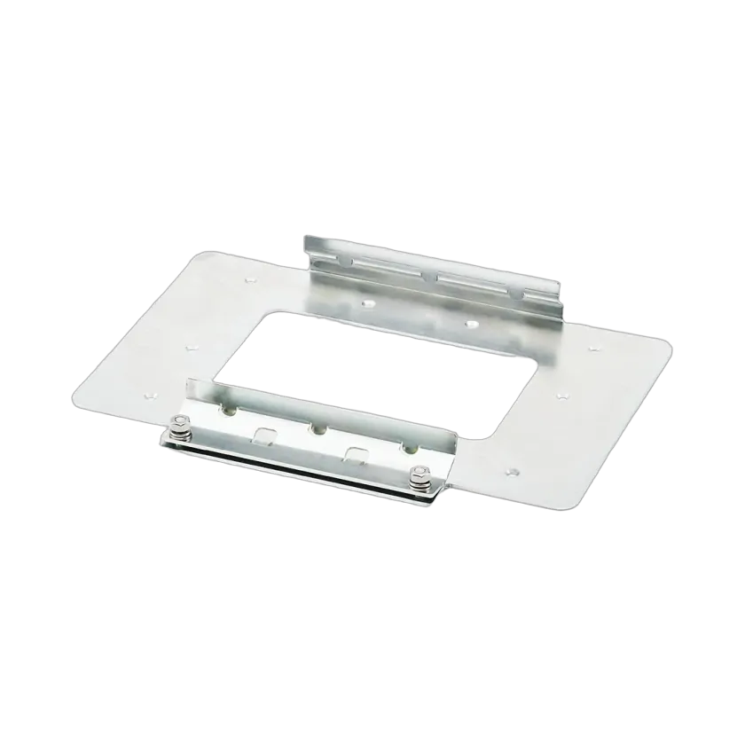This zinc plated bracket allows for installation and mounting to the floor of a vehicle via ten countersunk fasteners, and comes with instructions to complete the installation process.