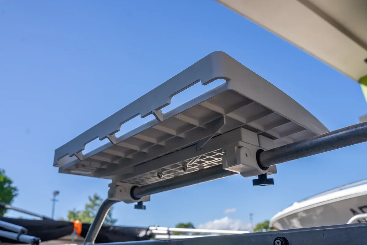 | Rail or clamp mount (rail mount 25 to 32mm rail clamp). Quick clamp technology allows ease of removal and fixing positions on the boats rails. Handy knife and plier holders. Cut outs at rear of board for draining. UV-stabilised high density polyethylene. Stores flat for ease of storage. |