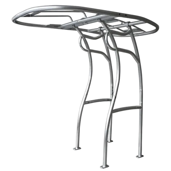 | • Solid 5mm alloy gussets adding strength and rigidity in rougher seas and transportation. • 2" diameter premium high tensile aluminium tubing. • Universal design fits consoles up to 128cm wide. • Prefabricated, pre-welded construction. • Assembles and installs without welding. • Marine grade clear anodized finish. • Marine grade 316 stainless steel fasteners included. • Folds forward when not in use. • 7 anodised solid plates provides mounting points for lights, UHF antenna, radar, outriggers and much more. • Outer mounting plates are 12mm thick. • Centre mounting plates are 5mm thick. • Black acrylic canvas with lashing included. Acrylic Canvas Top: • Heavy-duty solution dyed yarn filtering up to 90% of the suns heat and light. • Marine grade canvas is water repellent. • UV stabilised. • Easy to clean. • Lashing included. |