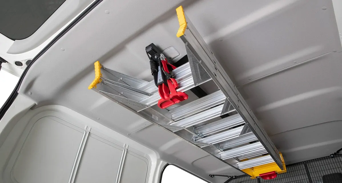 - The internal ladder rack is mounted to the vehicles roof opening up floor space for the cargo area.
