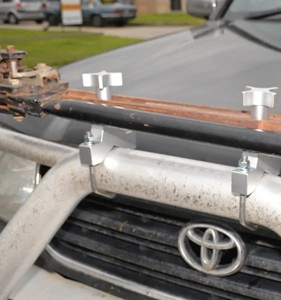 The Roadsafe Universal Lift Jack Holder has been designed for a universal fit, to bolt up to 90mm OD tube (approx. 3.5"). This fully adjustable tube mount is a very handy way of safely securing your lift jack onto the bull bar or roof rack for your exciting off road adventures, where you might need "quick, easy and often" access to the lift jack! Finished in either Black or Silver, the mount has been designed to suit for a wide variety of options, and can also be used on roof rack or roll bar applications.