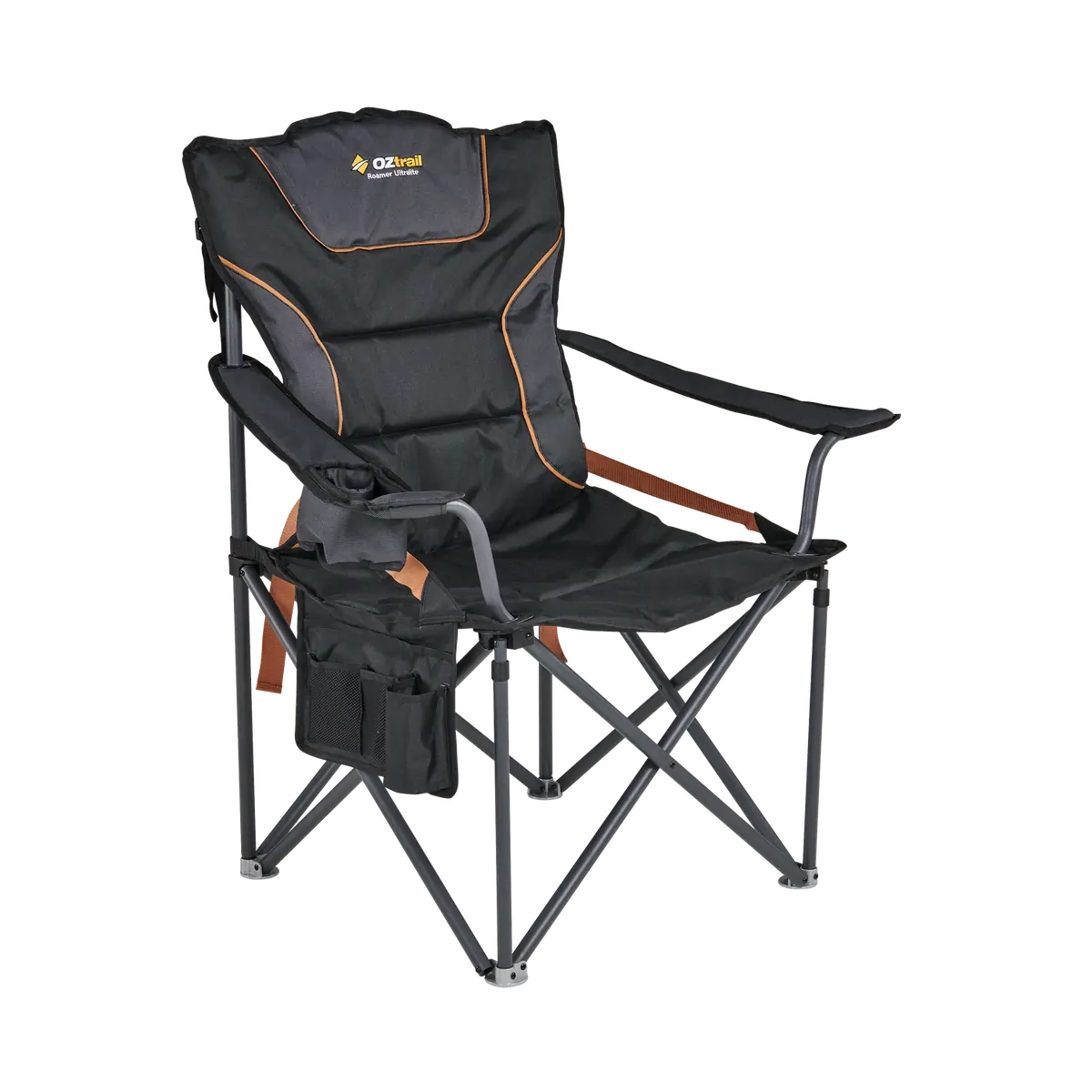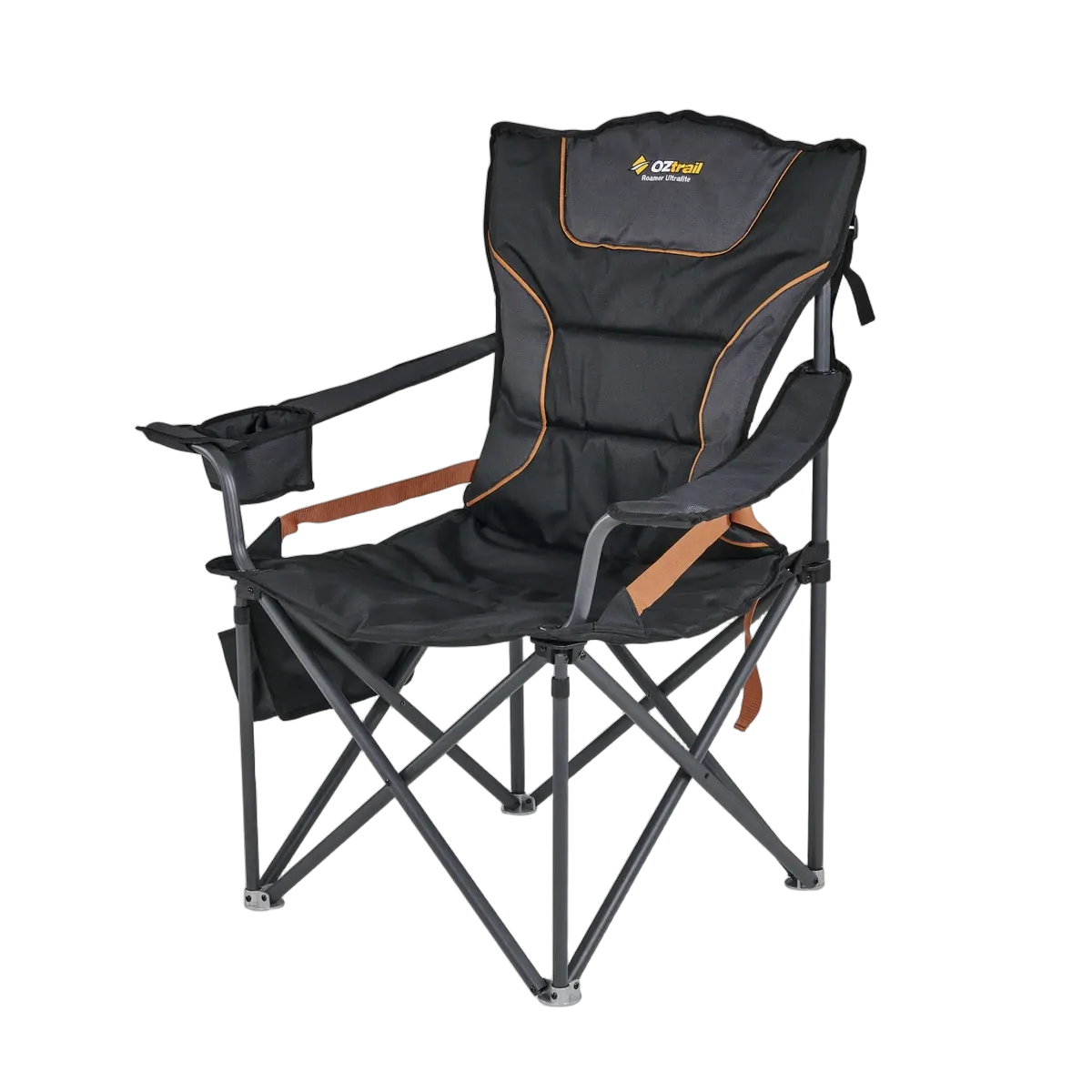 The Roamer Ultralite Chair combines lightweight design with durability, featuring a 22mm aluminum frame, padded seat and backrest, and lumbar support for outdoor adventures.