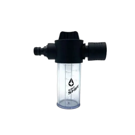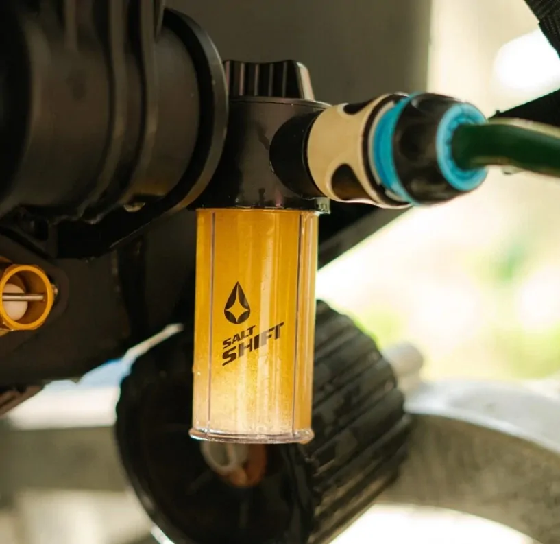 Plug and flush with the Salt Shift engine flusher. Simply plug the mixer into your ear muffs or PWC flush line as per manufactures directions, click it to the soap setting and flush our Salt Shift engine flush through your cooling system to clear sediment build up and keep that cooling system like new.