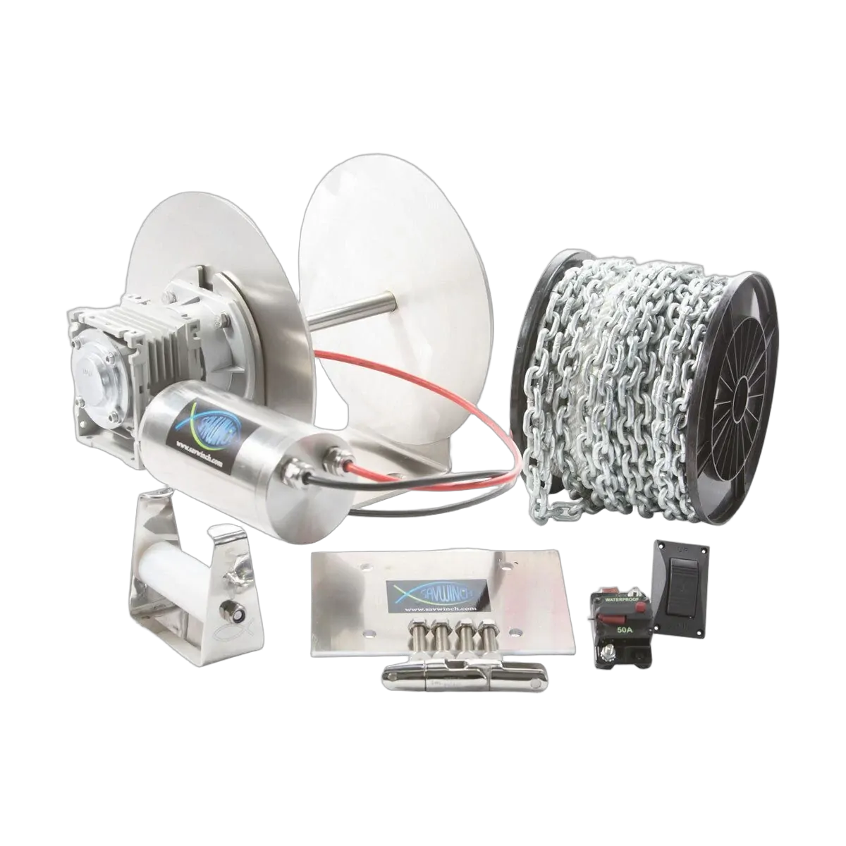 All Savwinch Drum Winches feature a sealed motor and gearbox with a 316 grade stainless steel drum and body to protect from water ingress and corrosion and come complete with double braid rope, chain and switchgear for hassle free anchoring.